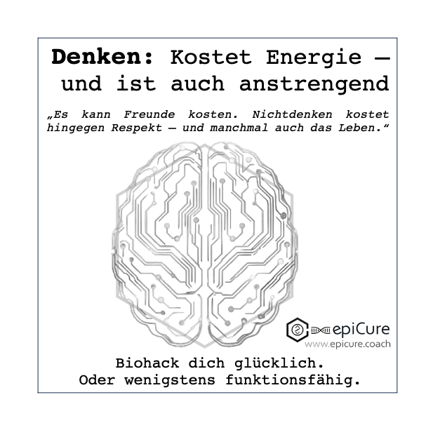 ⬡ Zusätzlicher Energieverbrauch bei intensivem Denken: nur 5–10% mehr.