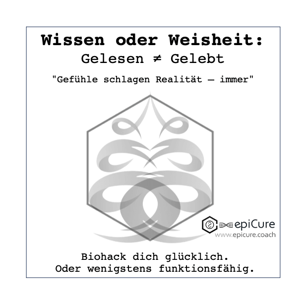 < \ > Jemand erzählt von seinem Weg, den er tatsächlich gegangen ist – mit allen Stolpersteinen, Umwegen und echten Learnings. Dann kommt die Person, die darüber gelesen hat, und erklärt besserwisserisch, wie es “eigentlich” funktioniert. Theoretisches Wissen wird über gelebte Erfahrung gestellt. Das ist respektlos und zeigt: Die Person versteht den Unterschied zwischen Wissen und Weisheit nicht.