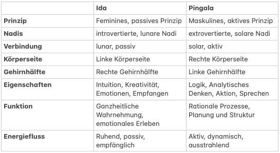 Ida verläuft auf der linken Körperseite, steht für das Weibliche und für das Mondprinzip.